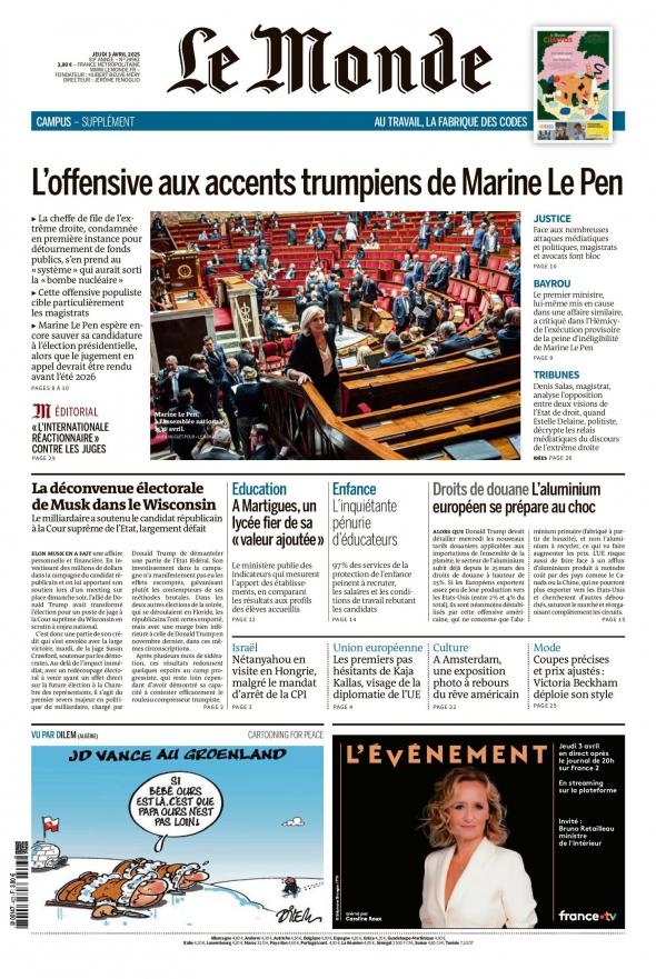 «Personne n’est jugé pour avoir fait de la politique […] L’égalité devant la loi est un pilier de la démocratie. Les élus ne disposent pas d’un privilège», a martelé la présidente du tribunal correctionnel de Paris, Bénédicte de Perthuis, lors de l’énoncé du jugement de Marine Le Pen, lundi, comme pour anticiper les critiques d’une justice politisée.