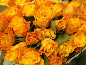J'aime acheter des fleurs, notamment des roses de couleur jaune rouge clair avec un peu de couleur orange.