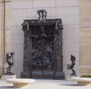 La porte de l’Enfer est un groupe de sculptures monumentales (6,35 m x 4 m). Cette porte comprend notamment "Le Penseur" mais aussi "L’Ombre" et plusieurs autres figures classiques, personnages principaux du poème de la Divine Comédie de Dante Alghieri qui était le livre favori de Rodin.