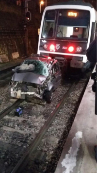 Une rame du RER est arrivée quelques instants plus tard, à faible vitesse et a traîné le véhicule sur vingt mètres, ont précisé les pompiers. Ses deux occupants, miraculeusement indemnes, ont pu heureusement en sortir juste à temps, selon les pompiers interrogés par un journaliste du magazine L'Express sur place.