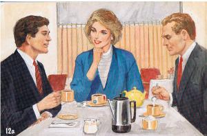 Le menton / la main / le nez / Les lèvres / les dents / un pichet de lait / la cafetière /