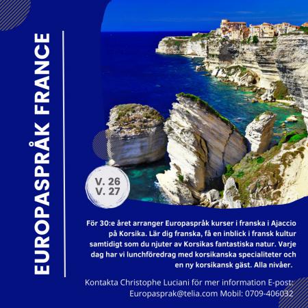 EuropaSpråk France / Christophe Luciani AB har mer än 30 års erfarenhet av att undervisa svenskar i franska språket och har elever från t. ex Sveriges Riksdag, och från näringslivet t. ex DLA advokatbyrå.